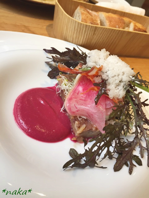 前菜 魚介のテリーヌ/温玉/ビーツと大根