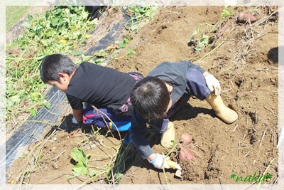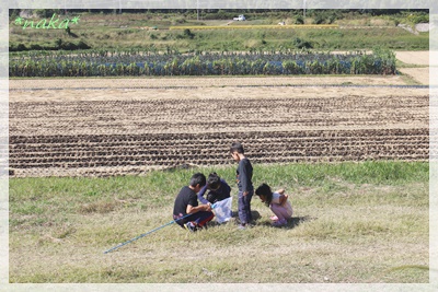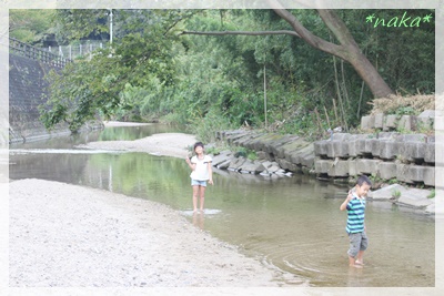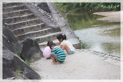 川は冷たいので、3人でず~っと地味に砂遊び♪