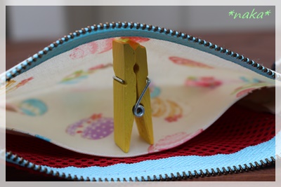 内側には仕切りを付けたので、絆創膏や小銭なども入れられます。