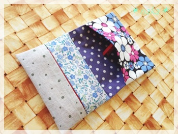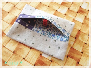 ただいま、ファスナーポーチにティッシュケースが付いているタイプを試作中。