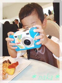 先日の結婚式で頂いたキッズカメラをすごく気に入ってる二人は