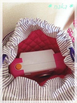 カメラを保護する為に、内側はキルティングで。